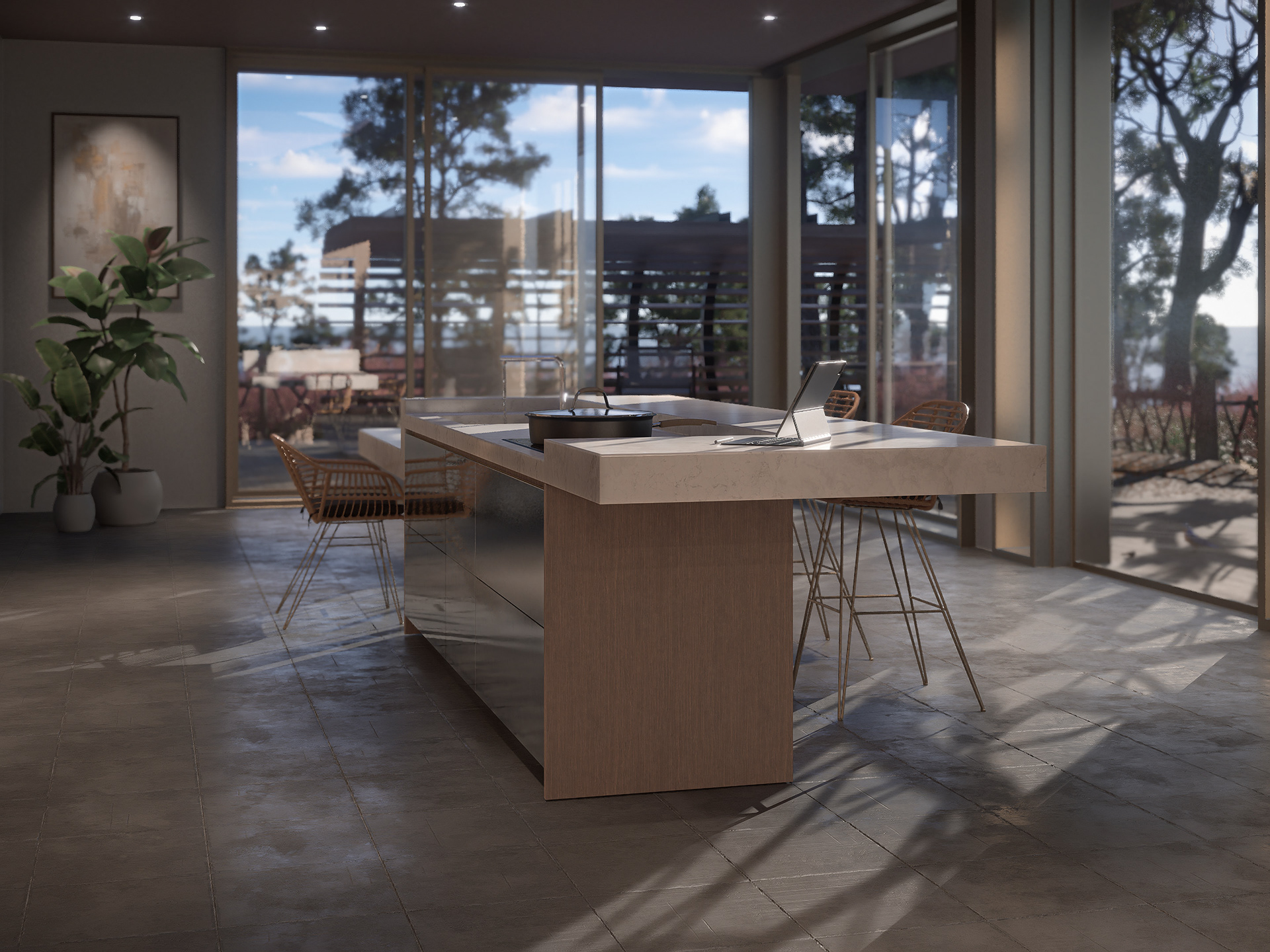 Cucina dal design minimalista inserita in una casa moderna caratterizzata da toni caldi e accoglienti. Il contrasto tra la pulizia formale della cucina e l’atmosfera rilassata di un ambiente marino crea un equilibrio tra funzionalità e comfort. Un progetto pensato per chi ama linee essenziali senza rinunciare al calore domestico. A minimalist kitchen design set within a modern home featuring warm and inviting tones. The contrast between the kitchen’s clean lines and the relaxed seaside atmosphere creates a balance between functionality and comfort. A project designed for those who appreciate essential forms without sacrificing homely warmth.